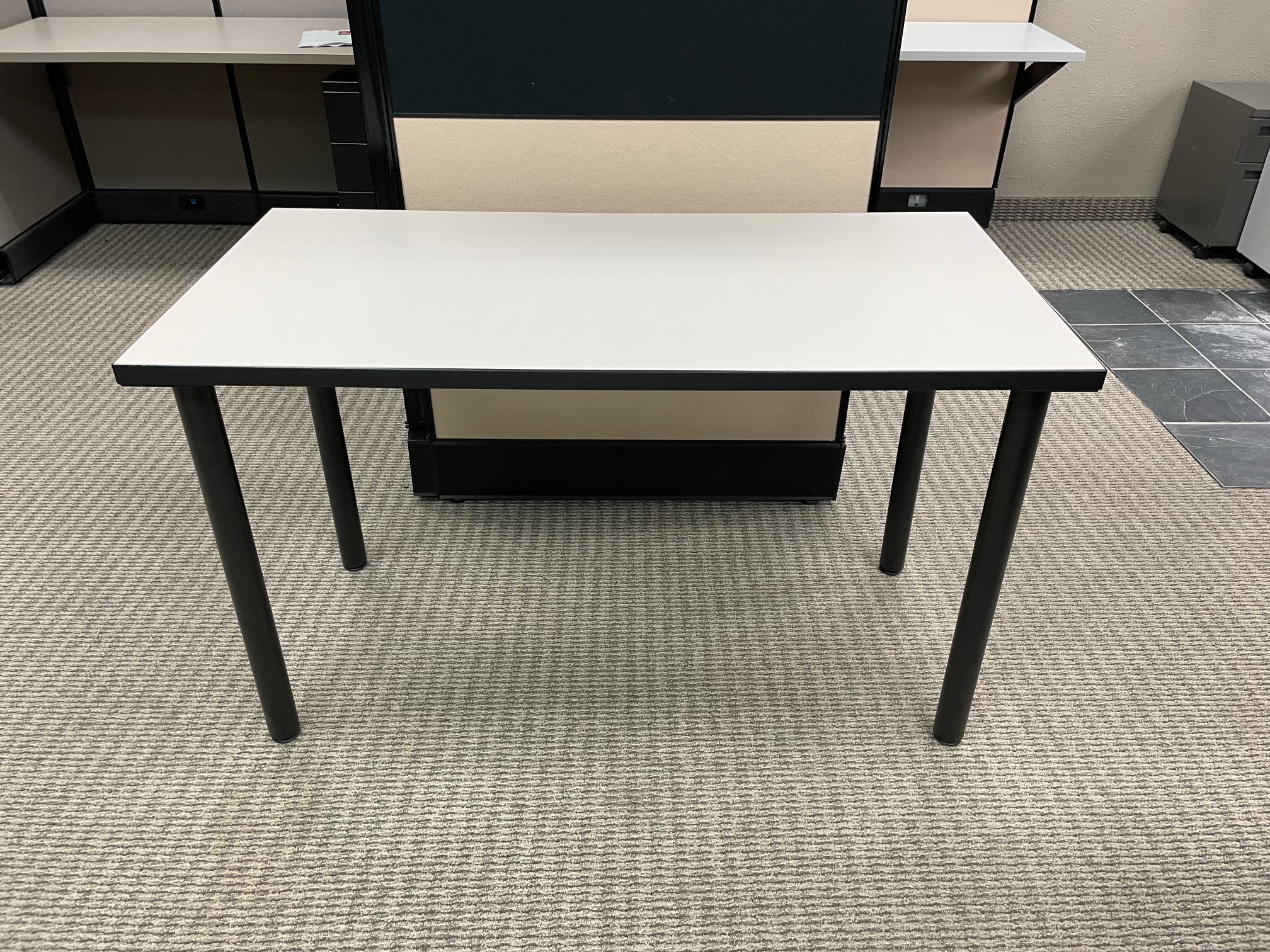 Durable 24×48 light gray office table with black post legs — perfect for desks, training rooms, workstations, or collaborative spaces. Clean laminate surface, modern design, and built to last. In-stock and ready for fast delivery from Cubicle Depot.