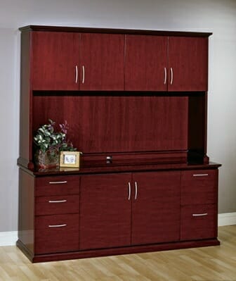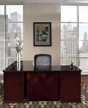 About the Madison Series. A design for the enthusiast, Madison brings together executive elegance, scale and characteristics with the splendor of wood craftsmanship. Hardwood veneers are vigilantly chosen and book-matched for the pure beauty of wood. Contrasting inlay accentuate the design. Tops highlight frequent grain direction on all components of L and U shape workstations. Returns and bridges include reverse-cope, multi-step edges for smooth work surface connections. Executive features include 79” vertical storage heights, glass-door display hutch with light kit, and available legal-width pedestals. Conference tables include contemporary round and racetrack tops corresponding with full and half-cylinder bases with veneer surfaces and solid hardwood floor-level trim. Maple and Mahogany feature ultimate high-gloss finish for a dramatic, glass-like appearance.
