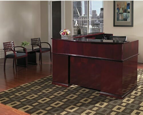 About the Madison Series. A design for the enthusiast, Madison brings together executive elegance, scale and characteristics with the splendor of wood craftsmanship. Hardwood veneers are vigilantly chosen and book-matched for the pure beauty of wood. Contrasting inlay accentuate the design. Tops highlight frequent grain direction on all components of L and U shape workstations. Returns and bridges include reverse-cope, multi-step edges for smooth work surface connections. Executive features include 79” vertical storage heights, glass-door display hutch with light kit, and available legal-width pedestals. Conference tables include contemporary round and racetrack tops corresponding with full and half-cylinder bases with veneer surfaces and solid hardwood floor-level trim. Maple and Mahogany feature ultimate high-gloss finish for a dramatic, glass-like appearance.